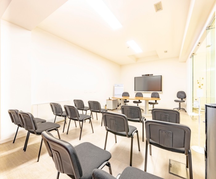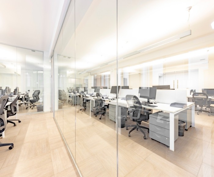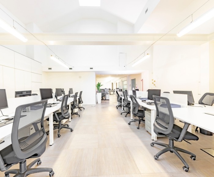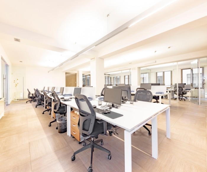- Ingresso, grande open space e 5 spazi riunione / uffici privati