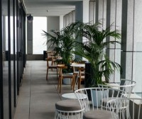 Il Piano Terra e il Piano Primo sono destinati a spazi di servizio e a un ristorante / bistrot / caffè con ca. 180 coperti, in uso esclusivo per il personale operativo nell’edificio e gli ospiti.